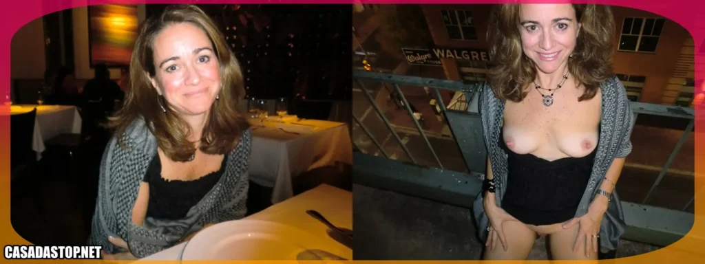 Confira abaixo galeria com mais de 40 fotos de Esposa MILF pelada em imagens de nudez e sexo! São dezenas de fotos amadoras onde ela aparece nua em diversos lugares. Ela tira a roupa em publico da mesma forma de fica nua em casa. Tem diversas fotos dela na rua, em lojas de sex shop, dentro do carro, no cruzeiro repleto de pessoas e por ai vai. Praticamente pra todo lugar que ela vai ela da um jeito de mostrar as tetas e até a buceta. Ela gostosa de fazer fotos peladas ou fazendo sexo. Temos imagens dela pagando boquete e muito mais. Com certeza uma das esposas exibicionistas mais safadas que já vi. Coisa linda de se ver confira!